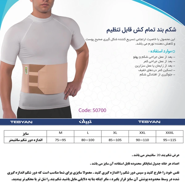 در بیمارانی که اخیرا جراحی ناحیه شکم و پهلو یا زایمان داشته اند معمولا توسط پزشکان توصیه می شود که تا مدتی از شکم بند های طبی استفاده نمایند تا علاوه بر کمک به بهبود پس از عمل از بروز آسیب نیز جلوگیری شود.این شکم بند از نمونه شکم بند هایی است که بیماران می توانند بدین منظور استفاده نمایند. هنگام سفارش محصول همواره به تناسب سایز سفارش داده شده با خود توجه داشته باشید. راهنمای سفارش محصول در تصاویر برای شما قرار داده شده است.